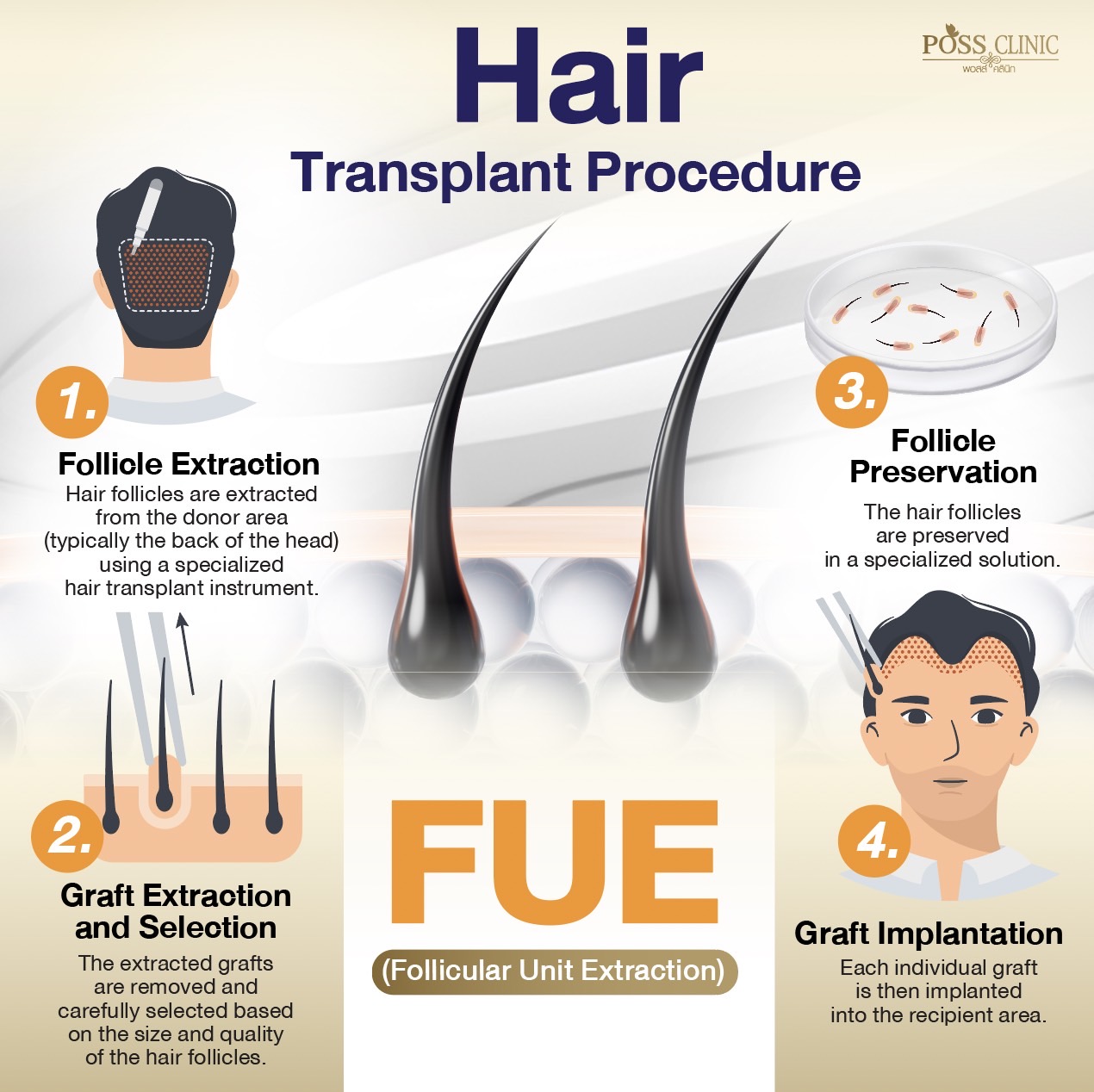 FUE hair transplantation is a technique that eliminates the need for large tissue excision. The procedure involves transplanting individual hair follicle grafts from the donor area, typically the back of the head, and implanting them into the recipient area.
