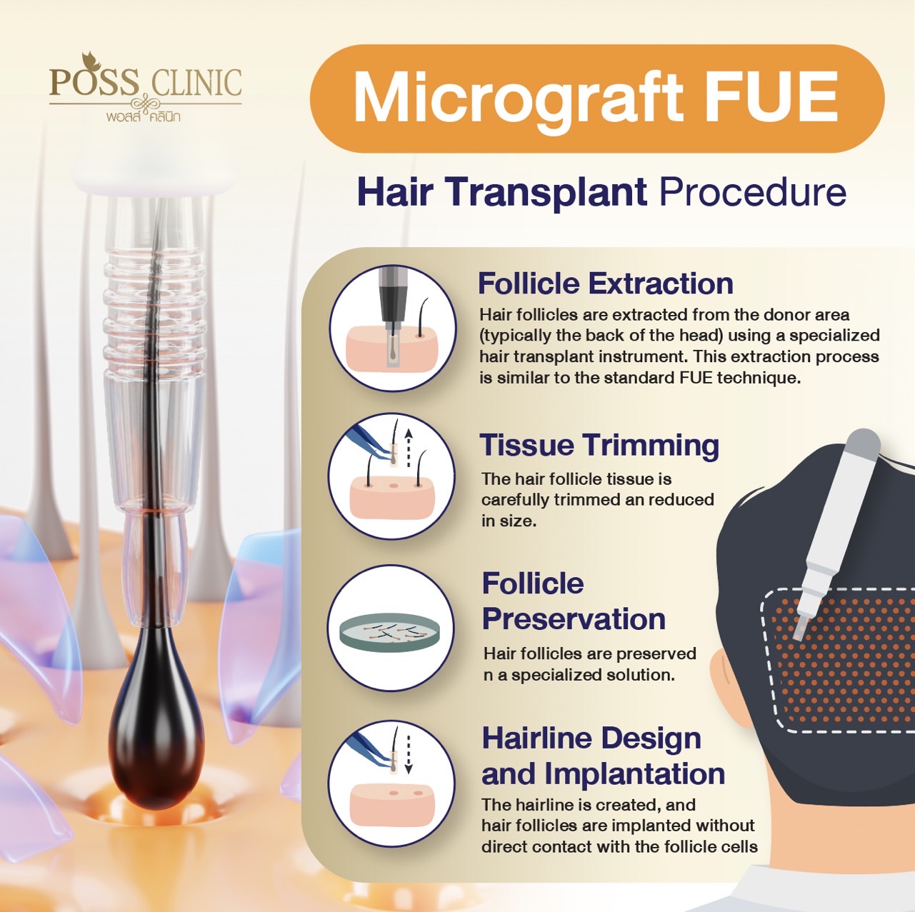 Micrograft FUE is a refined version of the traditional FUE technique. It employs extremely small punches, typically ranging from 0.8 to 1.2 millimeters, to meticulously extract individual follicular units.