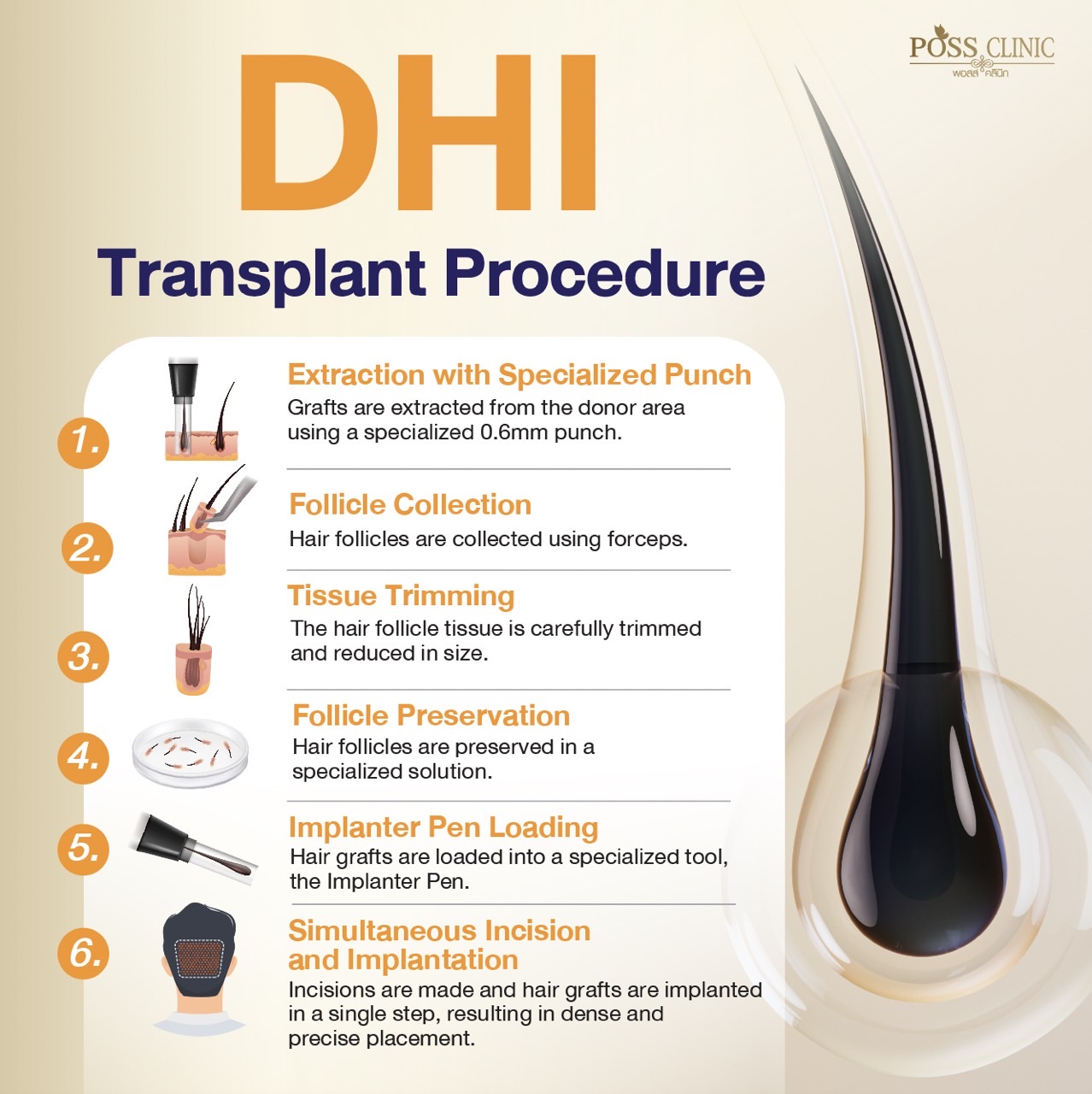 DHI (Direct Hair Implantation) is an advanced hair transplantation technique that utilizes a specialized Implanter Pen. This tool allows for direct implantation of hair follicles into the scalp, eliminating the need for pre-made incisions.